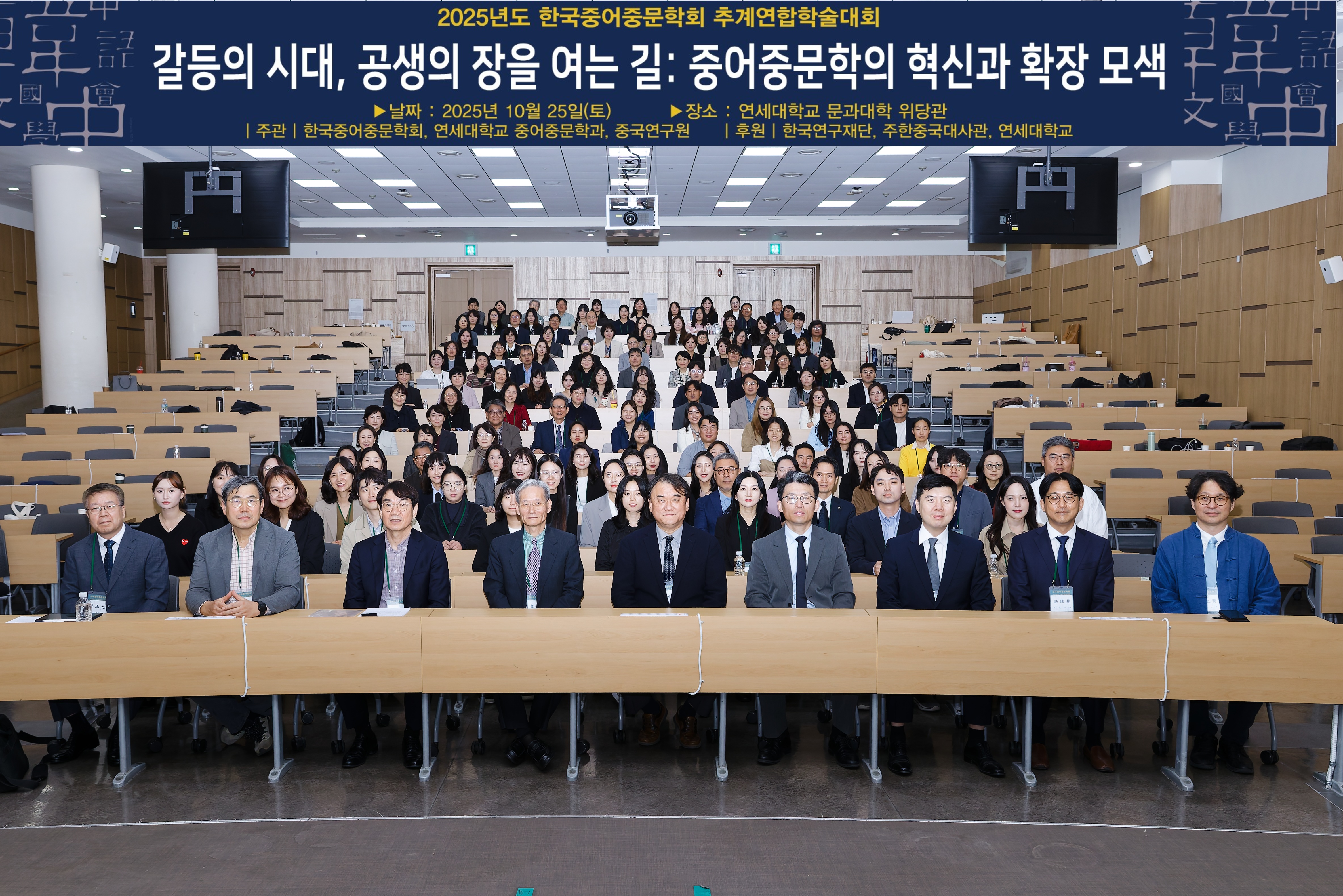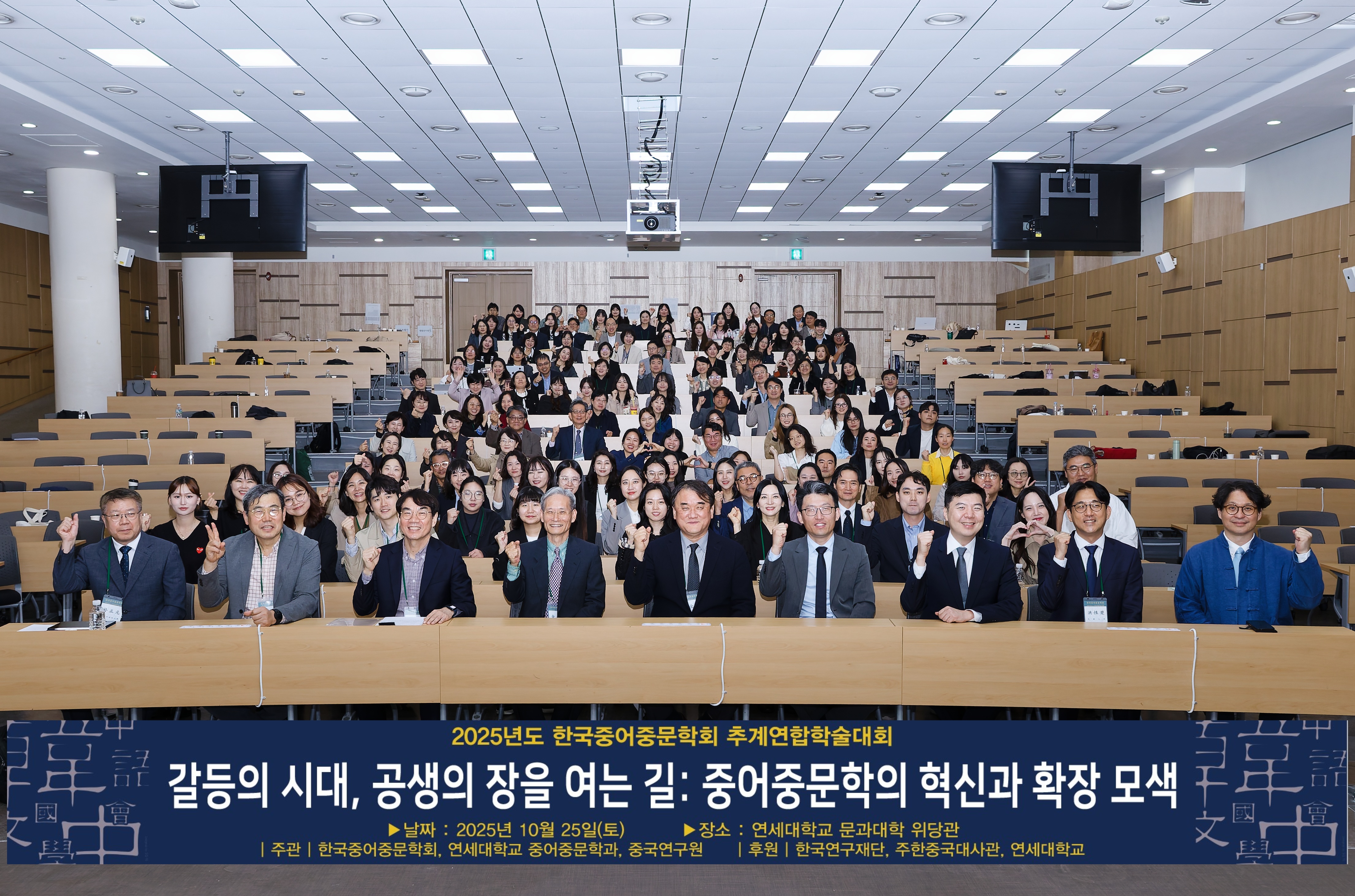 지난 토요일(25일) 연세대학교 위당관에서 개최된 2025년도 한국중어중문학회 추계연합학술대회를 성황리에 마칠 수 있도록 함께해 주셔서 진심으로 감사드립니다. 여러분의 열정과 참여 덕분에 이번 학술대회가 더욱 의미 있고 풍성한 자리로 빛날 수 있었습니다. 여러분의 소중한 연구와 지혜가 모여 우리 학회의 발전에 큰 힘이 되었음을 다시 한번 느끼게 됩니다.